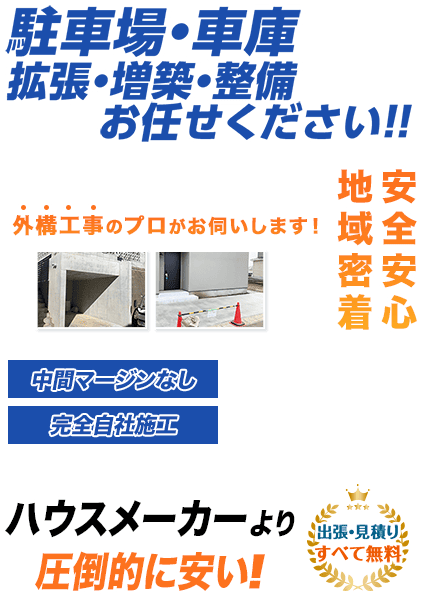駐車場やルーフ新設・増設・拡張は 駐車場やルーフ新設・増設・拡張は